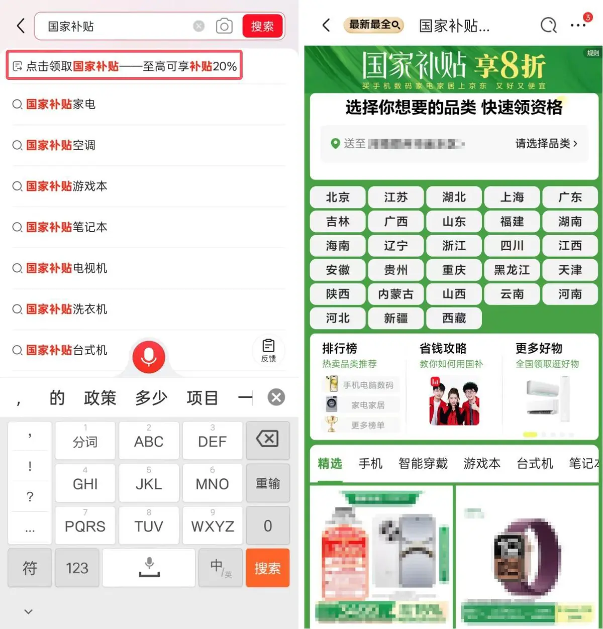 *4用户在京东App搜索“国家补贴”,即可根据指引快速了解当地国补政策,并完成优惠券的领取操作。