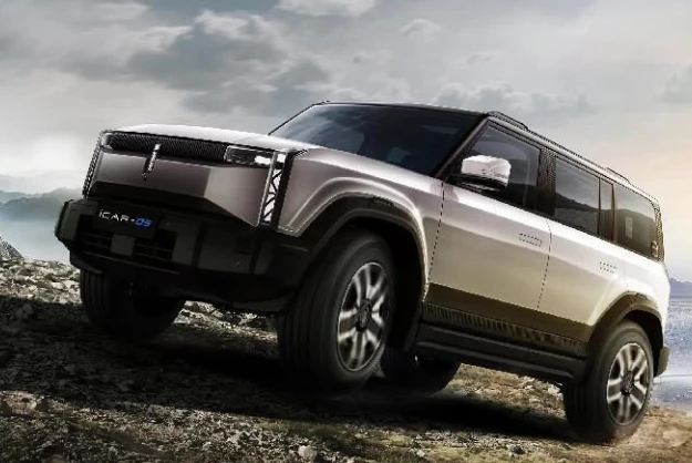 奇瑞iCAR 03外观造型硬朗有具未来感,回头率绝对高。硬朗的前包围棱角分明,像极了科幻电影里的未来汽车,同时细节处也很有设计感,分体式大灯组和中间直立式前灯相呼应,非常精致,呈“i”字形造型,内部做了三角形切割,像是闪耀的砖石。车的侧面和大多数硬派SUV一样,采用大量平直线条来凸显它的硬派。