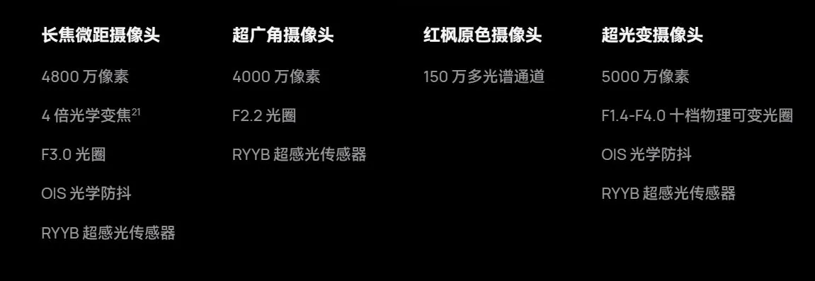 4X潜望长焦:48MP,ƒ/3.0,支持OIS;