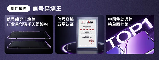 此外,OPPO A5 Pro 特别针对弱信号下保持连接的能力、信号强度、智能选网切网等进行技术优化,带来行业首创猎手天线架构,做到不怕墙、不怕挤、不怕远、永不断联,堪称「信号穿墙王」。