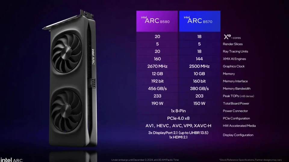 “Battlemage”中文意思就是战斗法师,标志着Intel要在独显市场大战一场的雄心,锐炫B系列显卡基于全新的Xe2技术架构,采用新的矢量计算以及光追单元,可以提供高达2倍的吞吐量,带来更好的视觉与光影体验。通过第二代XMX引擎,使用AI推理快速实现本地计算性能,通过XeSS 2技术实现高帧率畅玩2K游戏。另外针对上一代用户反应强烈的待机功耗问题,Intel积极响应用户需求,B系列显卡待机功耗降至10W以内。Intel B系列显卡在游戏、AI两个方向一起发力,力争成为2000元左右的甜品卡。