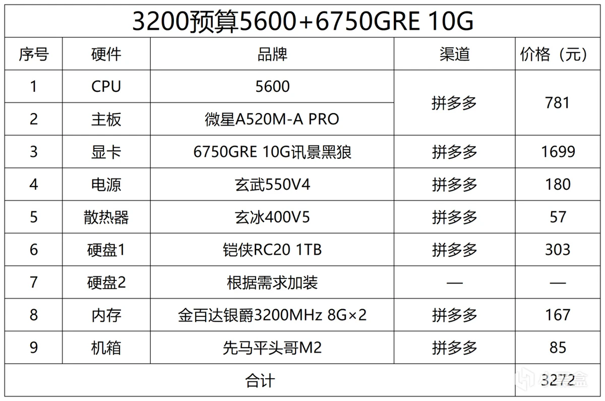 ③关于硬件价格,价格均为我自己当日能买到的拼多多叠券实际价格,如果你找不到同价的那说明可能你没有优惠券、或者活动结束和硬件涨价了,当然能买到比我价格更低的则更好,我找价格比较匆忙不一定是最低价。