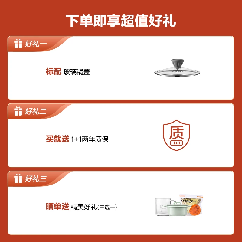 值得一提的是,锅具的手柄采用胶木材质,具有防滑触感,使你在烹饪过程中握持更稳定。锅盖则采用钢化玻璃,方便观察食物烹饪情况,同时配以硅胶密封圈,保持食物原汁原味。