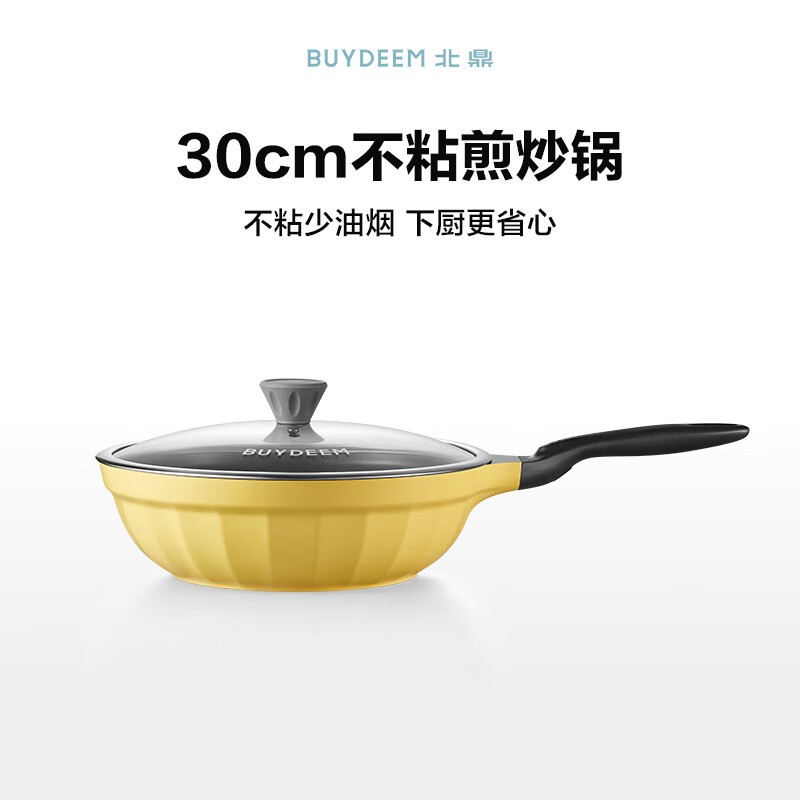 Buydeem,一个专注于烹饪器具的品牌,以其实用的设计和优异的质量,赢得了众多消费者的喜爱。其小鹅黄30cm平底锅不粘煎炒锅,更是以其出色的性能和优雅的外观,成为了厨房里的热门单品。
