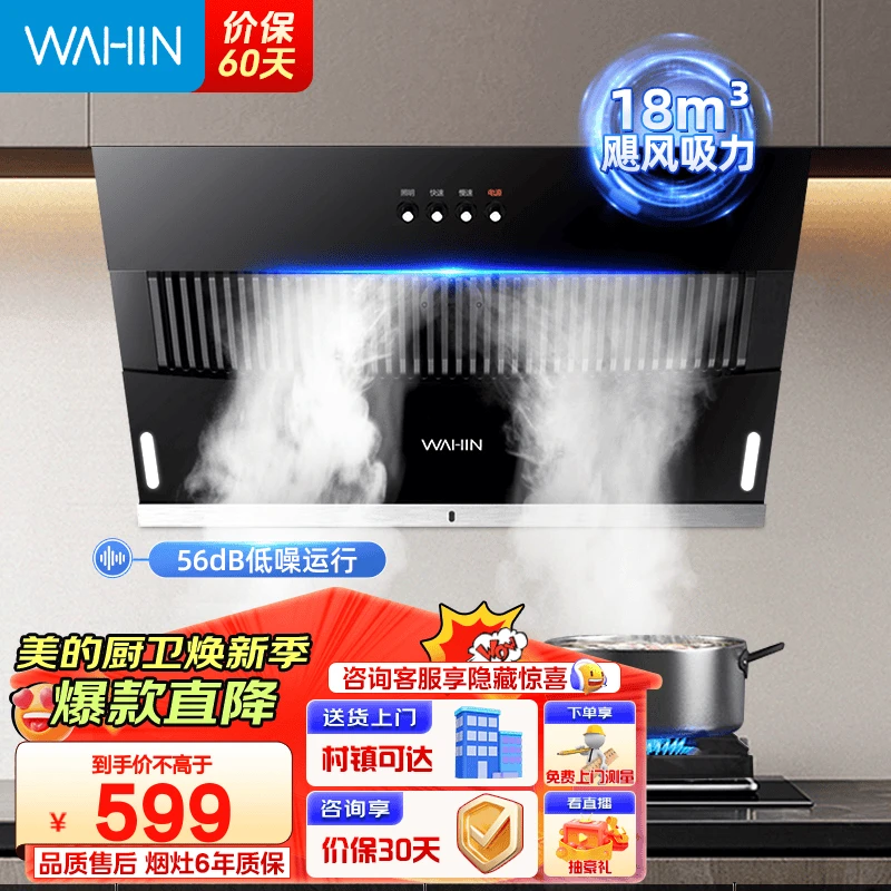 1. 美的(Midea) WAHlN 18立方大吸力抽油烟机:美的作为家电领域的知名品牌,其WAHlN型号以18立方米的强大吸力和低噪音运行受到用户青睐。