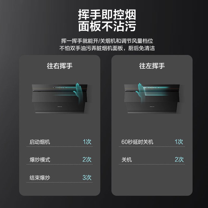 还有,这款油烟机还具备一些非常实用的小功能,比如双红外传感技术,挥手就能控制风量和开关,非常方便。而且,它的LED柔光灯设计,可以让你们在烹饪的时候更清晰地看到食物的状态。
