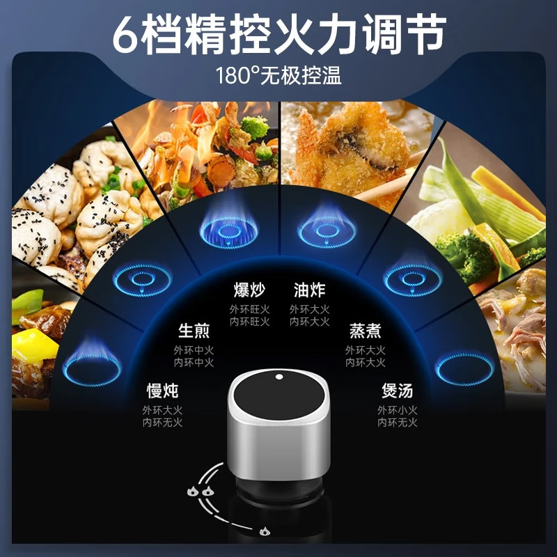 再说说这火,五重混氧全进风,蓝焰猛火,燃烧起来那叫一个充沛。57个3D立体火孔,大火孔助燃猛火,小火孔精控稳焰,就像那老北京的糖葫芦,一串火红,保证您炒菜不糊锅。