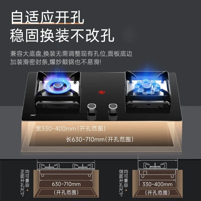 先科SAST双灶天然气炉5.2KW,采用全进风技术,确保火力强劲且燃烧充分。热效率高达63%,节能环保。创新的自适应底盘设计,适配多种开孔尺寸,安装便捷。配备熄火保护、童锁旋钮等多重安全防护,保障使用安全。5.2KW大火力,满足各种烹饪需求,一级能效标准,经济实惠。台嵌两用,适合各种厨房环境。选择先科SAST,享受高效、安全的烹饪体验。