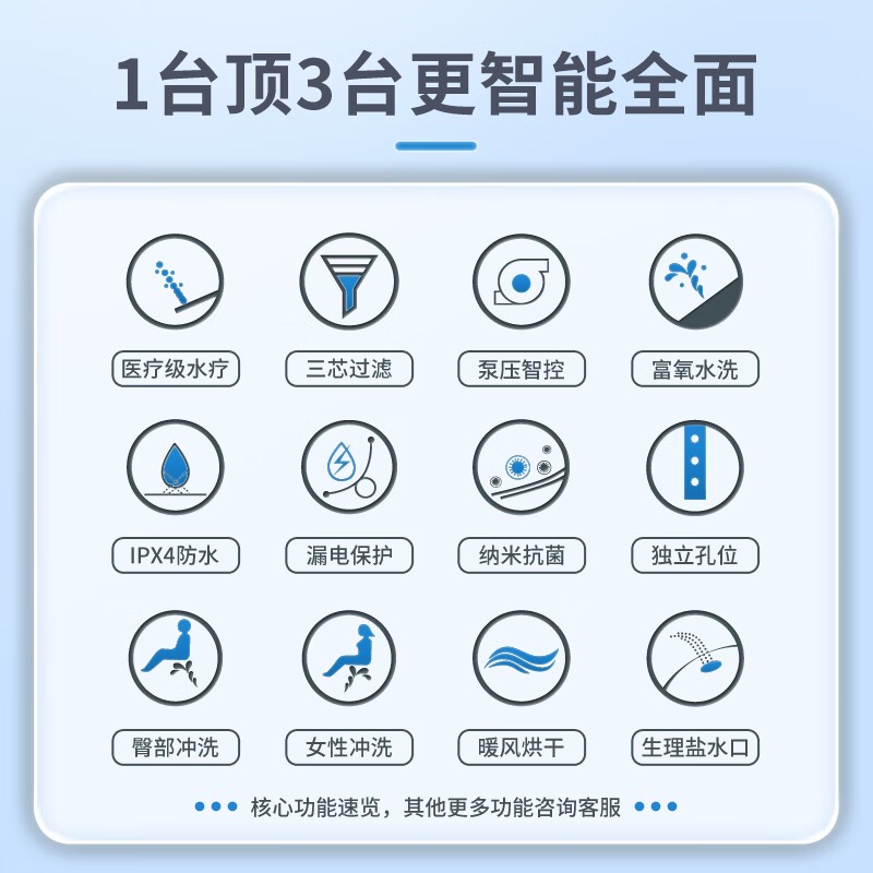 安全方面,您就更不用担心了,7重保护措施,让您用得安心。而且,安装方便,IPX4防水等级,全方位防喷溅,让您告别如厕烦恼,享受智能生活!