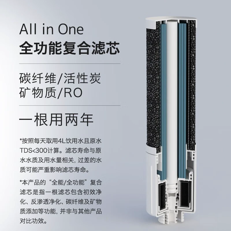 此外,CAR800-FA1直饮机的滤芯寿命长达3年,RO膜总净水量高达16.5吨,这意味着你可以在前三年内仅需更换2根复合滤芯,大大降低了维护成本。同时,其滤芯的升级和净化效果的改善,更是让每一杯水都更加安全、健康。