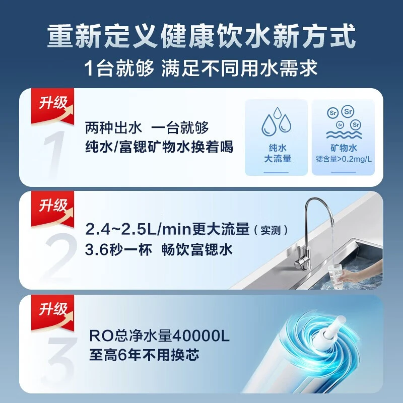 在净水效果上,J3471-ROB120搭载了长效RO膜,总净水量高达40吨,过滤精度达到0.0001um,能够有效去除水中的重金属、细菌、病毒等有害物质,保证水质纯净。同时,它还配备了外置活性炭和锶矿滤材,能够进一步改善水质口感,让每一杯水都更加甘甜可口。