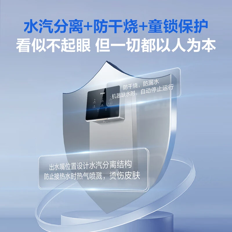 海尔HGR2291-JU1直饮机,这款产品小巧精致,机身厚度仅45mm,适合各种家居环境,无论是厨房、客厅还是餐厅,都能轻松融入。它的设计注重细节,出水嘴位置采用水汽分离结构,防止接热水时热气喷溅,保护皮肤。同时,它具备童锁功能,防止儿童误操作,保障使用安全。