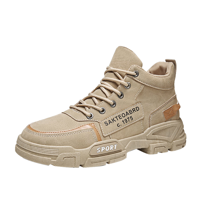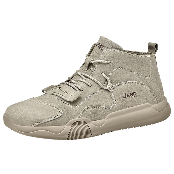 大家好,今天给各位推荐一款Jeep品牌的春夏中帮休闲马丁靴,货号PO3122230K。这款靴子有卡其色、灰色和沙色可选,尺码齐全,从38到44都有。我个人觉得,这鞋子最大的亮点在于它的材质,帮面采用猪皮革,内里是超纤,既时尚又舒适。