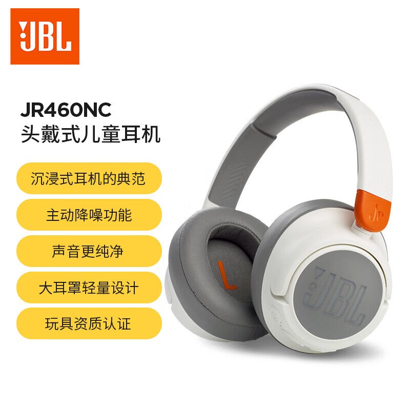 JBLJR460NC蓝牙耳机,头戴式设计,专为儿童打造。主动降噪技术,让孩子学习不受干扰,专注力更强。安全音量技术,保护听力,让家长更放心。耳机轻巧便携,90°旋转耳罩,适应不同头型,佩戴舒适。独有的PureBass低声压发声,音质纯净自然,助力孩子大脑发育。通过欧盟REACH环保认证,材质安全无害。内置全向麦克风,通话清晰,操控简便。多彩设计,激发孩子想象力和创造力。JBL76年品牌保证,专业品质,值得信赖。