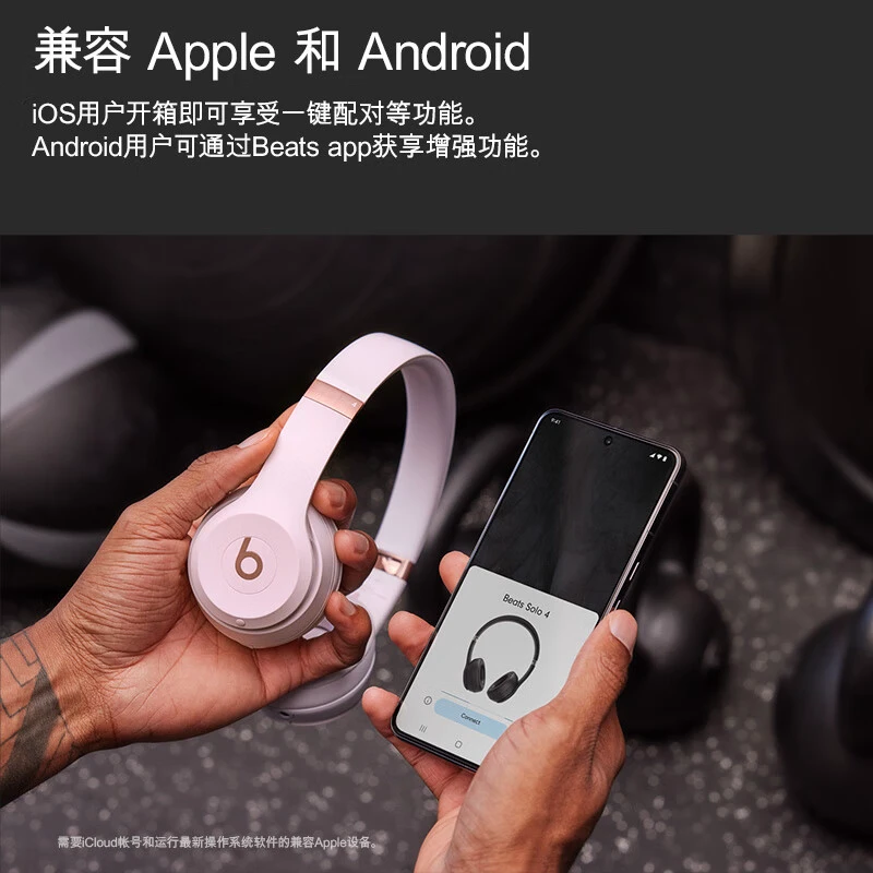 哎呀,这款BeatsSolo4耳机真不错!采用40毫米定制传感器,减少电子噪音、延迟和失真,音质清晰,音域宽广。支持动态头部追踪的空间音频功能,听感仿佛置身音乐现场。耳机仅重217克,UltraPlush耳罩设计,佩戴舒适,长久戴也没问题。FastFuel闪充技术,充电10分钟,播放5小时,不用担心电量问题。兼容iOS和Android设备,无缝连接,使用方便。BeatsSolo4,确实是硬核乐迷的挚爱选择!