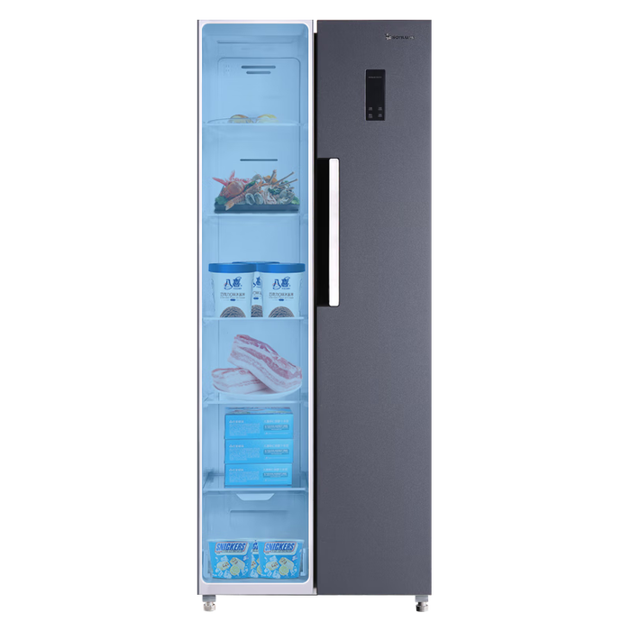 您说说,这风冷无霜的技术,是不是让您省心?制冷快,无噪音,就像夜晚的小猫咪,悄悄地,不扰人。再瞧瞧这容量,403升,大得能装下一家人的美食梦想。
