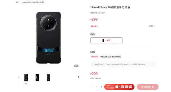 目前,该微泵液冷壳已在华为商城上架,适配Mate 70、Mate 70 Pro、Mate 70 Pro+,售价299元,将于12月4日10:08开售。