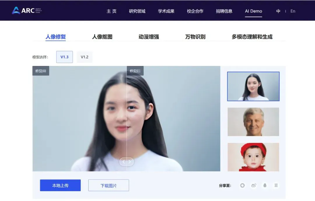 https://arc.tencent.com/zh/ai-demos/faceRestoration