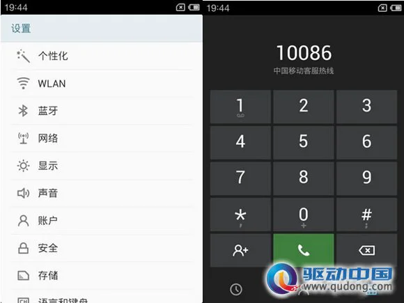 手机设置、拨号界面以及发送短信界面