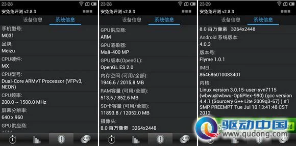 升级版双核魅族MX硬件信息(来自Antutu)