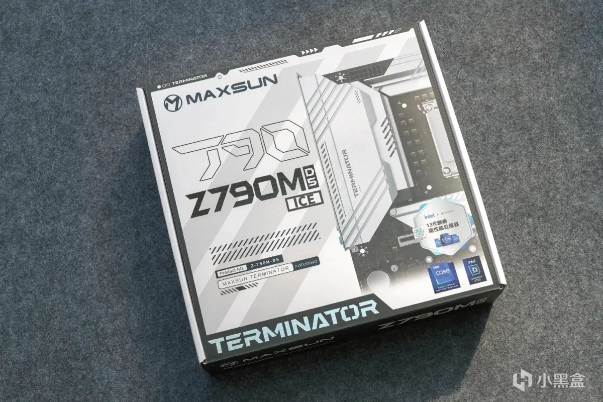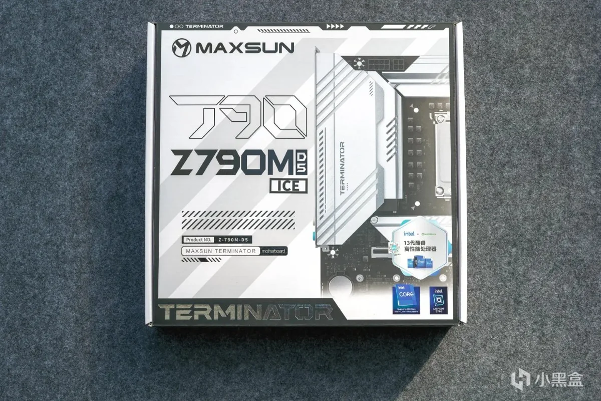 铭瑄MS-终结者 Z790M D5 ICE的包装盒为白色打底,由于是M-ATX主板,所以包装盒的体积也不算大,做的还是比较精致的。
