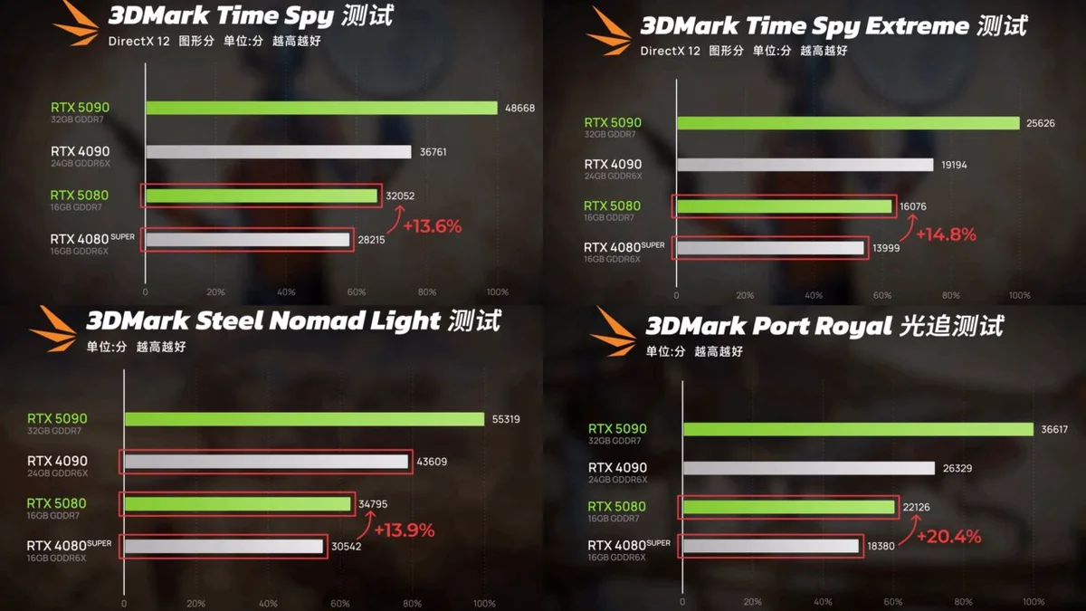 5080提升就不到15%,肉眼可见的少。感谢老黄带来的三瓜两枣。
