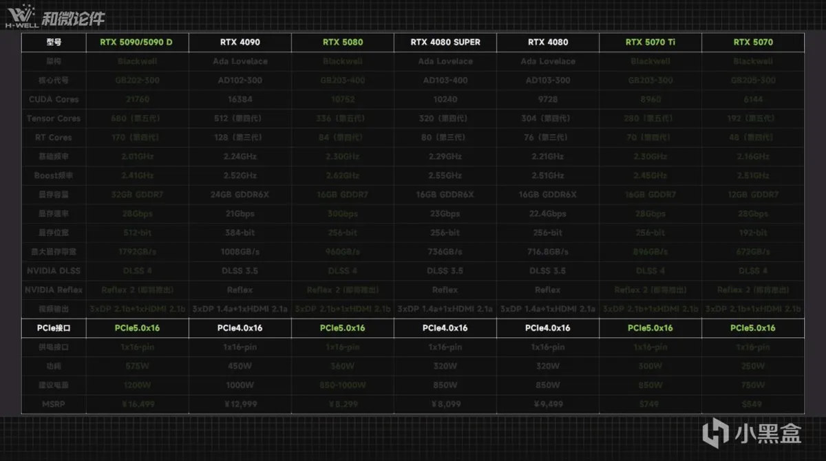 这里先给没听懂这句话的小伙伴们科普一下,最新一代50系列显卡的带宽已经升级到了PCIe5.0,