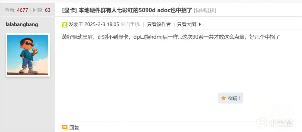 另外,七彩虹的5090D adoc也中招了。玩家安装了最新的显卡驱动程序,电脑开机时屏幕直接黑屏,识别不到显卡。不管接DP还是HDMI接口都一样。
