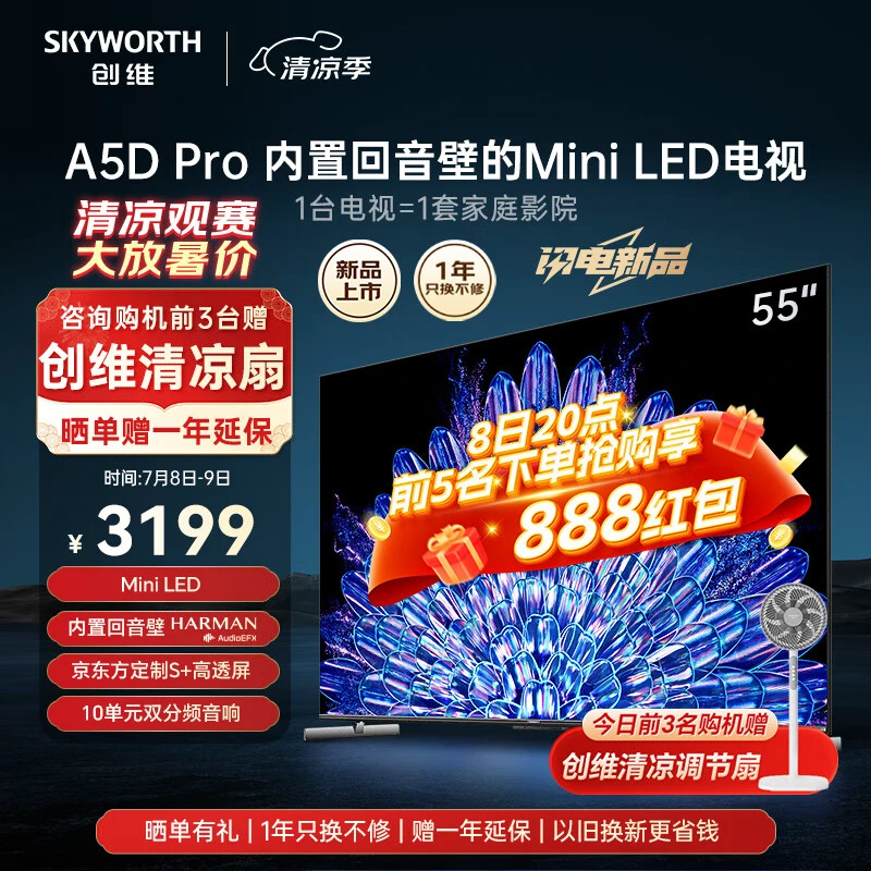 总的来说,创维55A5D Pro是一款性能非常出色的Mini LED电视,无论是画质、音效还是性能都非常优秀。它给您带来了极致的观影体验,让您在家就能享受到顶级的视听盛宴。我非常推荐这款电视,它绝对值得您的信赖。