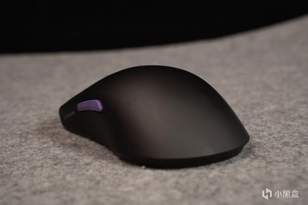 首先看一下鼠标的外形,鼠标采用类肤涂层的设计,能让鼠标防滑性更好,鼠标整体呈现前低后高的趋势,这种模具类似于赛睿的SENSI模具类型了,是一个标准的抓握鼠标。但同时小手的趴握其实也行,同时在侧边也设计了侧键,实测下来并不容易误触。