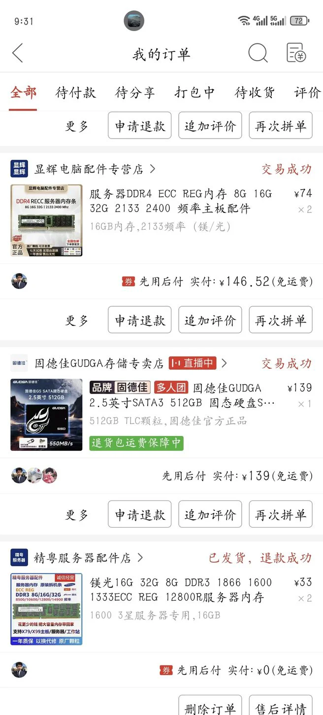 以上硬件多数在pdd平台购买,(除显卡为某🐟平台购买),平台购买有保障,短时期损坏可退换。
