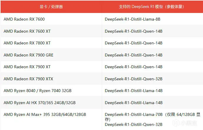 此外,AMD官方还就如何在自家硬件中使用DeepSeek R1模型提供了相关说明,用户要确保显卡驱动版本为Adrenalin Edition 25.1.1,并且需要在系统上安装上LM Studio 0.3.8或更高版本,具体显卡支持列表如下: