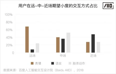 同时,我们发现,用户的心理场在物理世界的表征也体现了距离上的渐进。其中,远场对应的距离约为2.7-4.2米,这个距离内,用户希望小度机器人传递吸引注意力的信号。