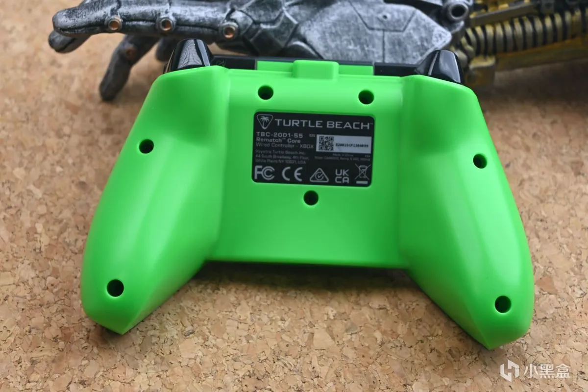 翻到背面能看到塑料感是有点重的。他的握把光秃秃的,并未做防滑处理。七个外露的螺丝孔位也很明显,整体观感算不得上乘。不过好在它握把的弧度较大,Watch的时候中指能够很好的扣住手把,只要不是大汗手玩家,用着还是不怎么打滑的。当然,你也可以自己缠一点医用胶布或者手胶来增加他的吸汗能力,毕竟就这价格,没防滑纹什么的自己克服一下。