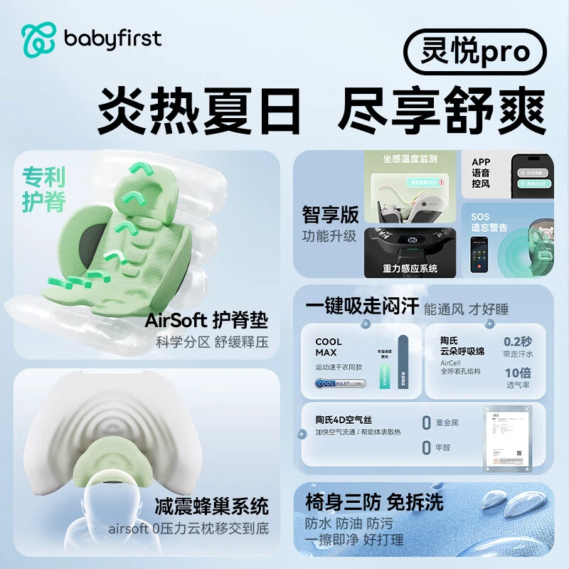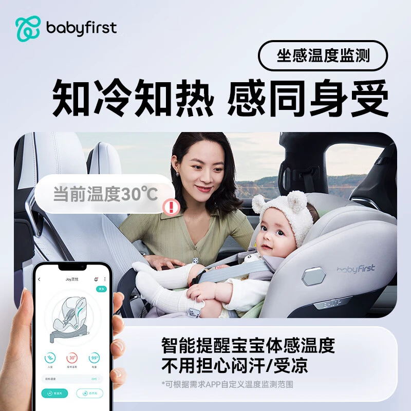 智能温度监测:座椅配备温度传感器,可以实时监测座椅表面的温度变化,当座椅温度超过或低于宝宝适宜的范围时,会通过智能提醒功能及时提示。