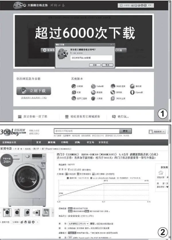插件的使用方法很简单。在浏览器启用该插件的情况下,用户只要访问浏览京东、亚马逊、一号店、当当、国美、苏宁易购等任意主流网上商城,就可以直接在购买页面的下方看到一个新的提示窗口,用户可以在当前介绍页面中看到价格趋势图(如图2)与其它商城报价(默认按价格由低到高排序)。