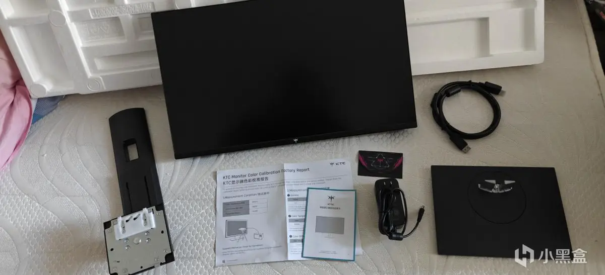 为什么这么说呢?因为我之前就四百不到买过KTC的显示器,而且1K+200Hz的配置,使用体验就很不错。有点跑题了,咱们回到这次的24寸+2K显示器上。咱们还是直接开箱,所有厂商统一的加厚牛皮纸,统一的泡沫填充。然后是统一的配件: