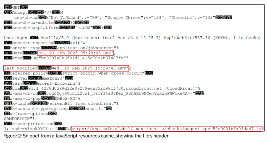 在 Bybit 被攻击的事件中,恰恰如此。根据 Bybit 公布的报告,攻击者在February 19, 2025 的时候替换了 safe 服务器上的 JavaScript 文件。这个 JavaScript 文件替换了用户要签名的数据,最后构造了恶意升级的交易。