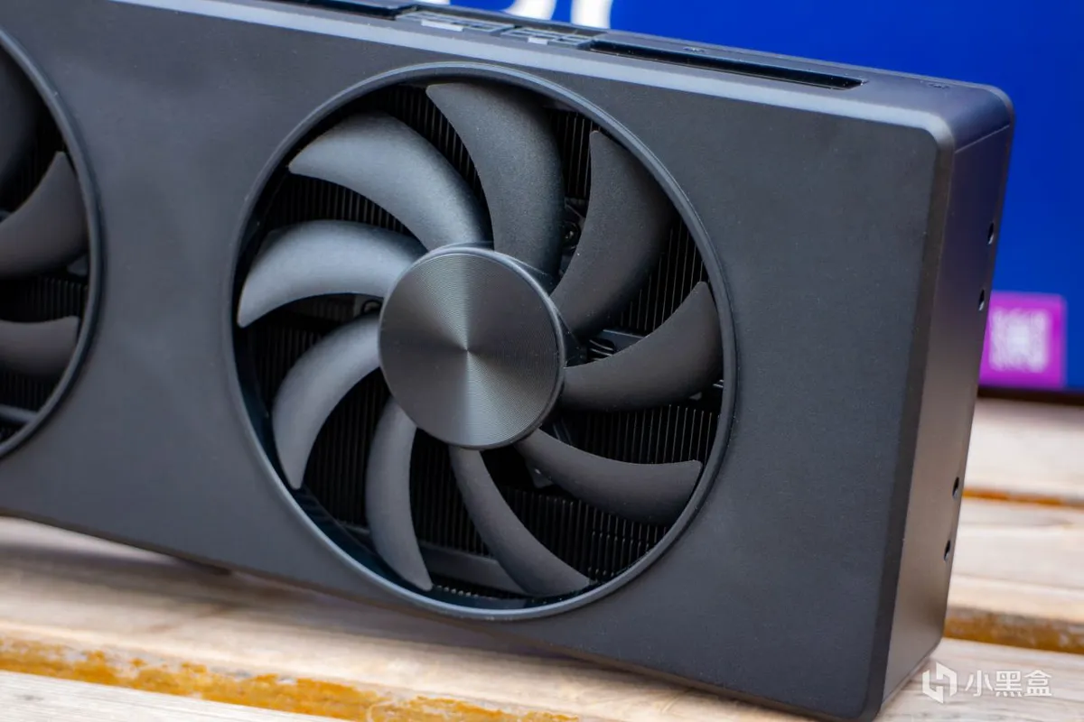 正面非常简洁啥都没有,工程塑料外壳很厚实,质感到位。跟我之前摸过的7800XT公版有的一拼。