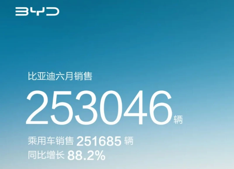 上半年一晃而过,如今的新能源汽车销量榜“老大哥”比亚迪,仅6月便实现了月销251685辆;1-6月销量达1248161辆,完成了年度“小目标”的41.60%。当下半年汽车旺季来临之时,比亚迪的月销量或将再度冲高。以此推算,比亚迪年销300万辆或将如期收入囊中。
