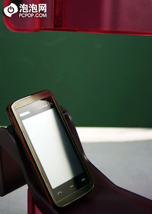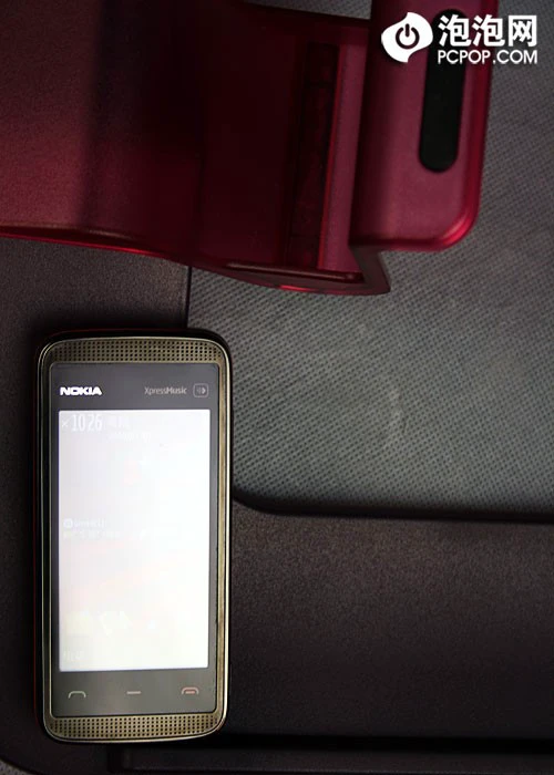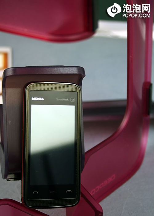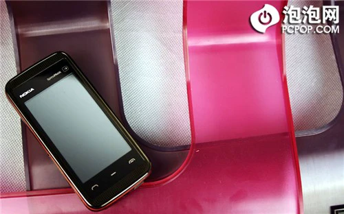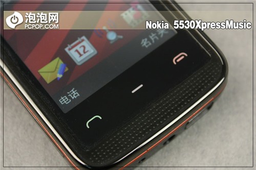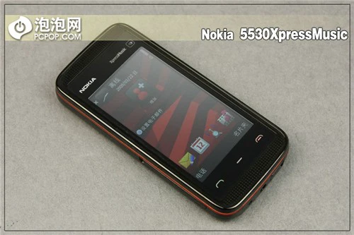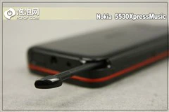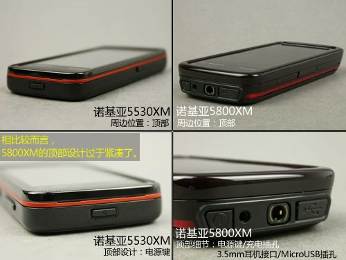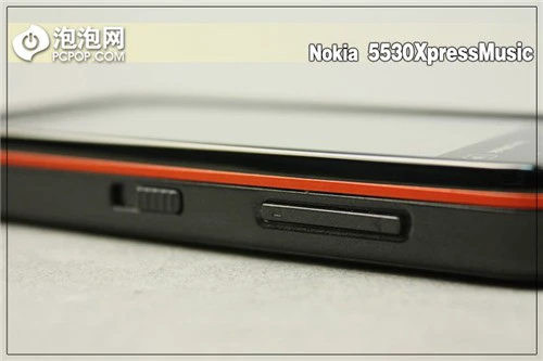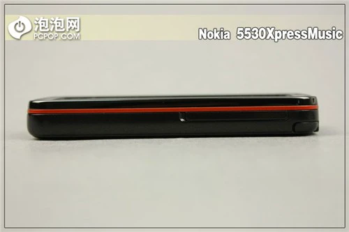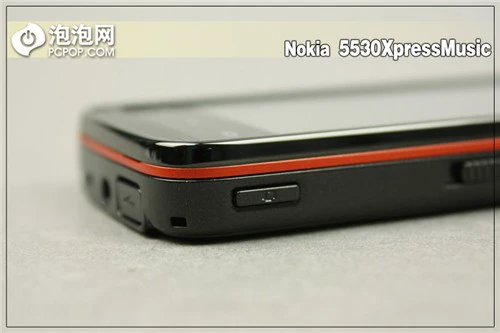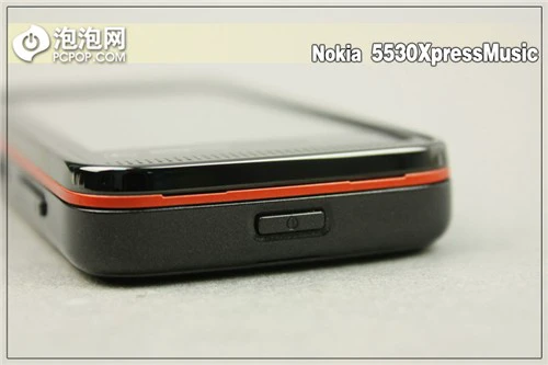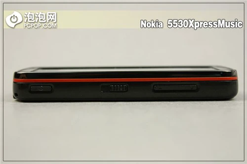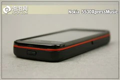 周边环境设计上,黑色的诺基亚5530XM在周边加入了红色条状带,这样的设计同5800XM也颇为相似。该机的上方并没有设置太多的元素,只是在中间位置具有该机的电源键。