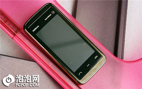 该机正面搭配了一块2.9英寸的TFT触摸屏幕,不支持多点触控(诺基亚触控手机都不支持),屏幕分辨率仍然是诺基亚触控手机都采用的360×480像素,16:9的人体工程学屏幕比例。发色数为1670万。
