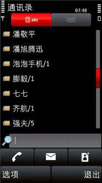 电话簿功能上,诺基亚5530XM依然支持诺基亚手机普遍采用的名片式电话簿,公用内存模式,支持多群组设置,并且还支持首字母查询电话簿。放入新SIM卡后,该机还会自动提示时候复制新SIM卡名片至手机,或者是选择电话簿显示电话簿来源。