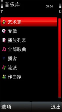 音乐功能虽然是诺基亚5530XM的主打功能,但就像诺基亚5800XM一样,诺基亚并没有为他们的XpressMusic系列音乐手机配备专门的音乐播放器,仍然是类似于S60第三版的音乐播放器,支持按照艺术家、专辑、流派等不同种类来选择歌曲。