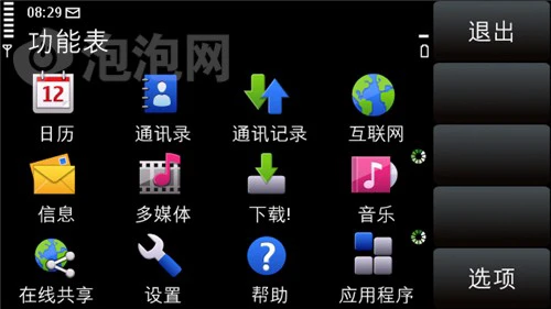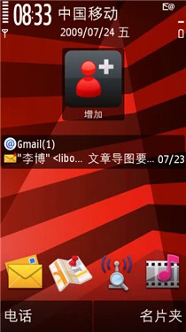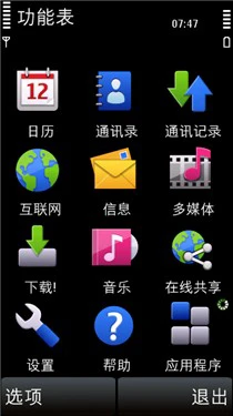 诺基亚5530XM采用的依然是诺基亚5800XM所采用的S60第五版软件,而作为最新的一款S60第五版手机,诺基亚5530XM在系统方面的主要改变在于加入了一些菜单过渡效果,例如说缩小-放大、淡入淡出、拉门式等等,而且笔者觉得虽然该机的硬件配置以及整体能力都超过诺基亚5800XM,但就机身反应速度以及输入速度上来看,两者相差不大。