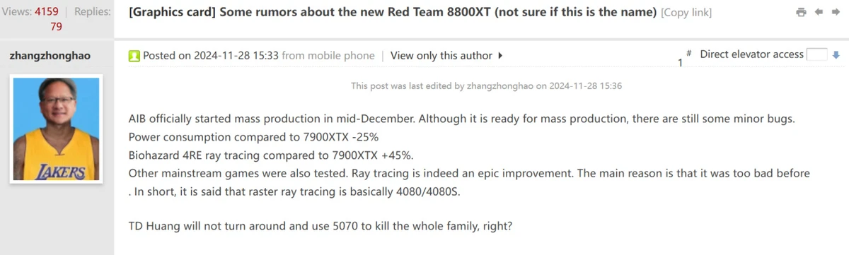 RX 8800XT(命名可能会变)将于12月中旬正式进入量产,也就是几周后