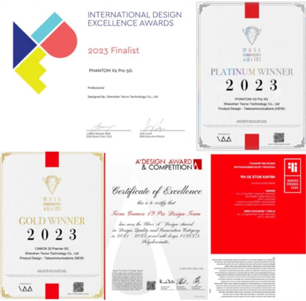 通过洞察本地审美时尚趋势的洞察,并结合硬件新材料技术突破,传音构建起了领先的本地化工业设计能力。目前,传音已经自主研发了变色龙虹彩技术、E-Color Shift技术、竞速电驱素皮技术、电致变色和电致发光技术、光绘皮革技术、多色光异构体技术等,引领着新兴市场手机设计、工艺、用户体验等方面的升级。凭借出色的工业设计理念,传音旗下多款产品获得国际设计大奖,如TECNO PHANTOM X2系列斩获IDEA工业设计奖、缪斯设计奖铂金奖;Infinix NOTE 30 VIP凭借“竞速电驱素皮”创新技术荣获2023国际CMF设计奖、2023 iF国际设计奖。