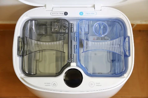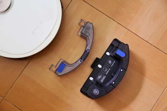 科沃斯超能王在拖地上也下足了功夫,标配有两个水箱:一个是应付日常简单清洁的精控水箱,一个是针对顽固污渍深度清洁的强拖水箱,用户可以根据自己需求选择切换。