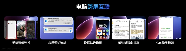 此外,电脑端的跨屏互联也迎来升级,用户可以将手机屏幕镜像投屏到电脑,鼠标拖拽即可完成文件传输,最多支持同时打开5个手机窗口,手机上的应用通知也会无缝流转到电脑上,更支持键盘快捷键一键隐藏全部窗口,完美适配日常工作场景。不止是生态间的互联,OPPO自有生态的一碰互传现在也支持小红书笔记、三方歌单、淘宝链接、视频链接等内容的一碰共享,玩法更多,快乐加倍。