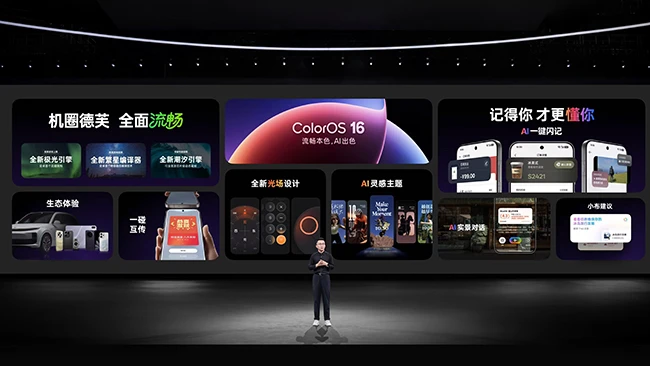 2025年10月15日,中国,深圳 —— 2025 OPPO开发者大会(ODC25)上,全面焕新的ColorOS 16正式发布。此次ColorOS 16带来全新流畅技术架构,全新流畅双引擎以及自研繁星编译器全面赋能流畅体验,让机圈德芙,流畅更进一步。同时,断代领先的小布记忆将解锁更多记忆场景,并将记忆能力融入小布助手、小布建议,打造更专属的小布个人助理。真实自然的全新光场设计,以及好用更易用的跨生态互联功能,也将带来前所未见的便捷体验。全新ColorOS 16将率先搭载在即将上市的OPPO Find X9系列、OPPO Pad 5、一加15以及一加Ace 6等新机型。